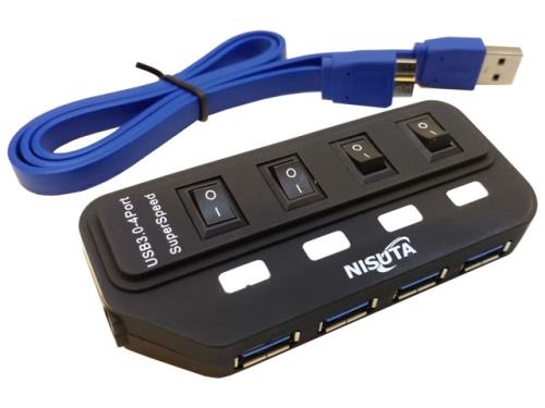 Hub usb 3.0 x 4 puertos nisuta c/switch individual ns-uh0431